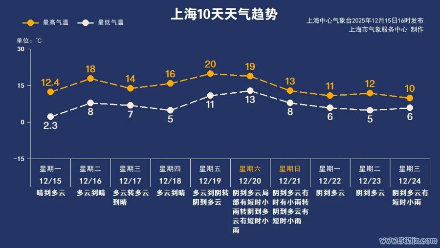 今天(12月15日)清晨,本轮冷空气开释了“临了的寒意”:郊区最低气温皆刷刷跌破冰点,市区徐家汇站也仅有2.3℃。但跟着阳光上线,气温马上回升,白昼最高气温多量升至11~14℃(徐家汇站12.4℃),体感昭彰转暖。